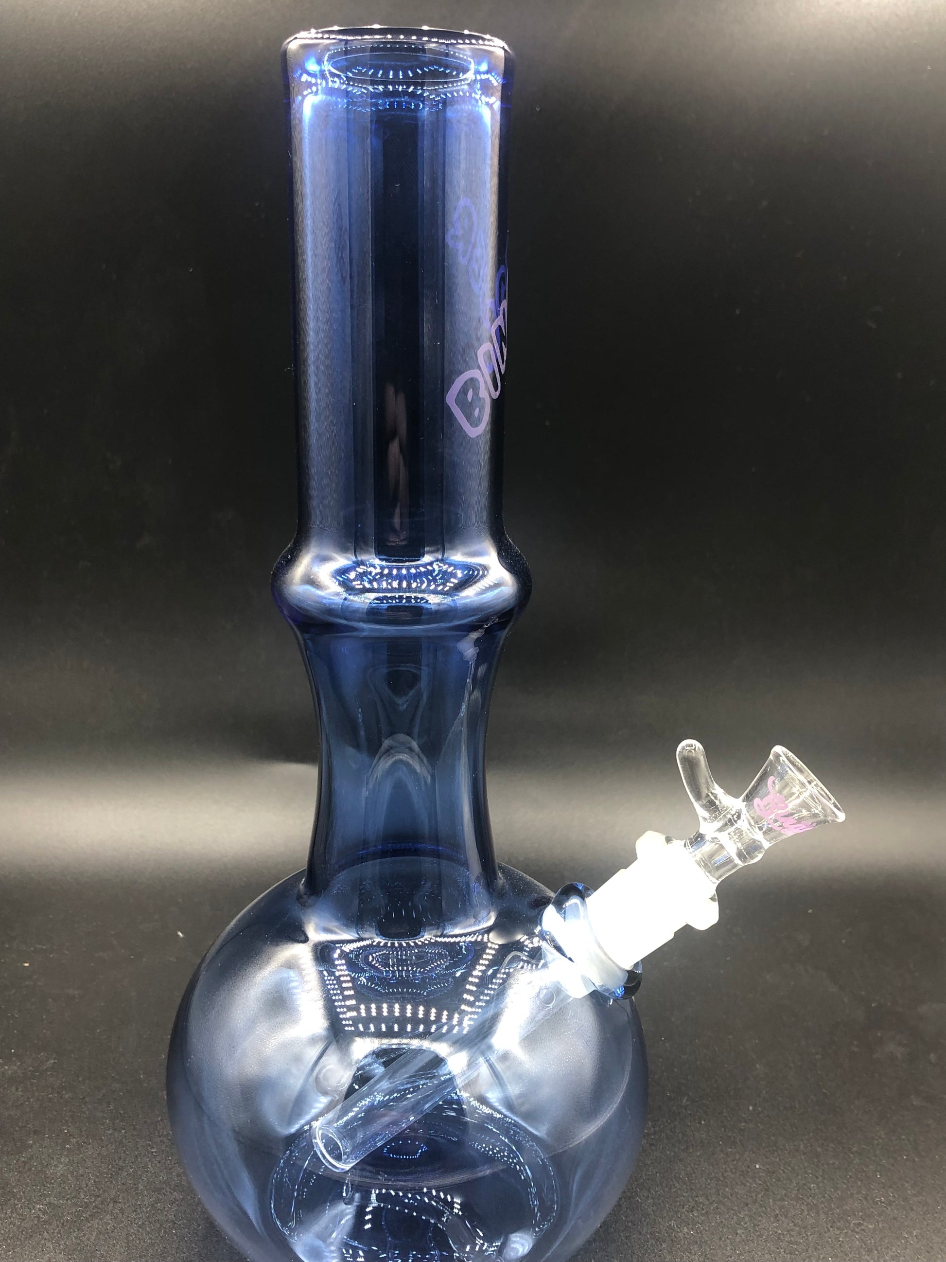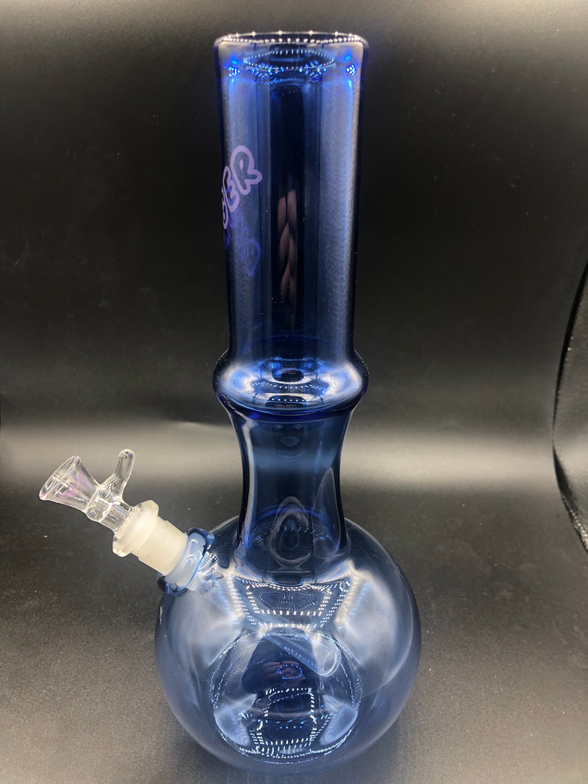 10 3/4" tall , 44x4 mm tubing , Light Cobalt Blue Tubing , 14/19 transitional down stem 4" with 14mm single hole clear slide.